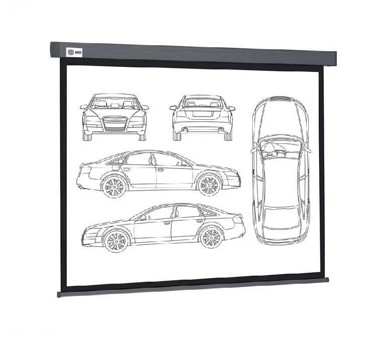 Тип установки: настенно-потолочный Размер белого поля полотна (см): 127x127 Размер корпуса экрана (см): 145.9x6.2x8 Размер упаковки (см): 151.3x12x11.5 Вес товара: 5.5 кг Размеры верхней/нижней/боковых кромок (см): 0/0/3 Цвет корпуса экрана: Pantone black 7S-2082